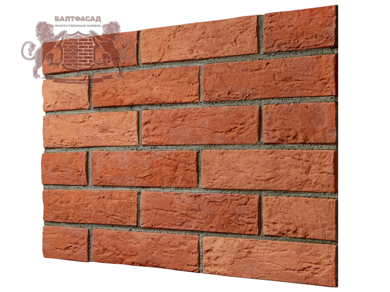 Облицовочный камень Толос полностью повторяет фактуру кирпича, что создает эффектный внешний вид стен, цоколей, арок и каминов. Он укладывается с учётом расшивочного шва 1-1,2 см.