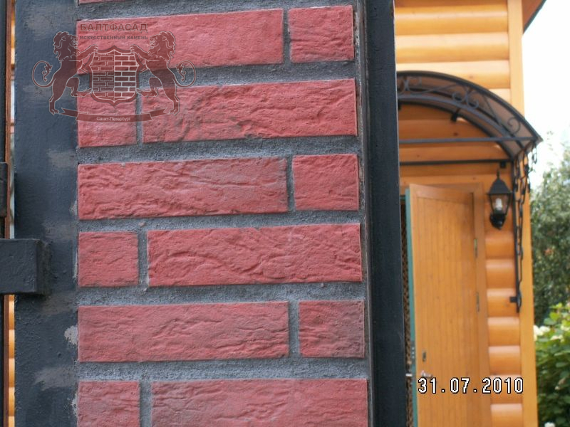 Облицовочный камень Толос полностью повторяет фактуру кирпича, что создает эффектный внешний вид стен, цоколей, арок и каминов. Он укладывается с учётом расшивочного шва 1-1,2 см.